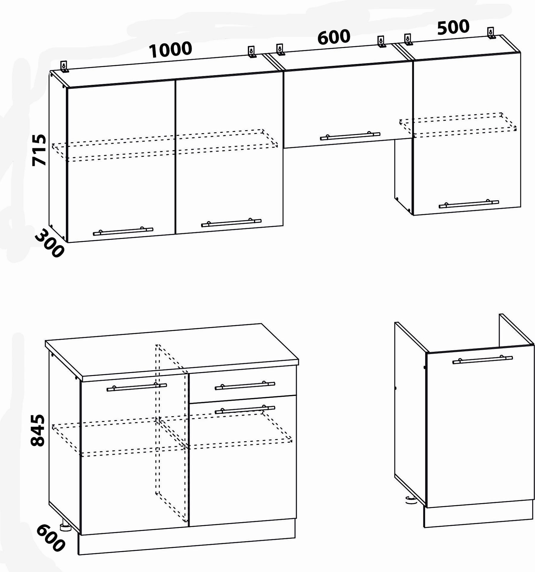 • Глубина шкафов: Верхние 300 мм/Нижние 600 мм/Глубина столешницы 600 мм