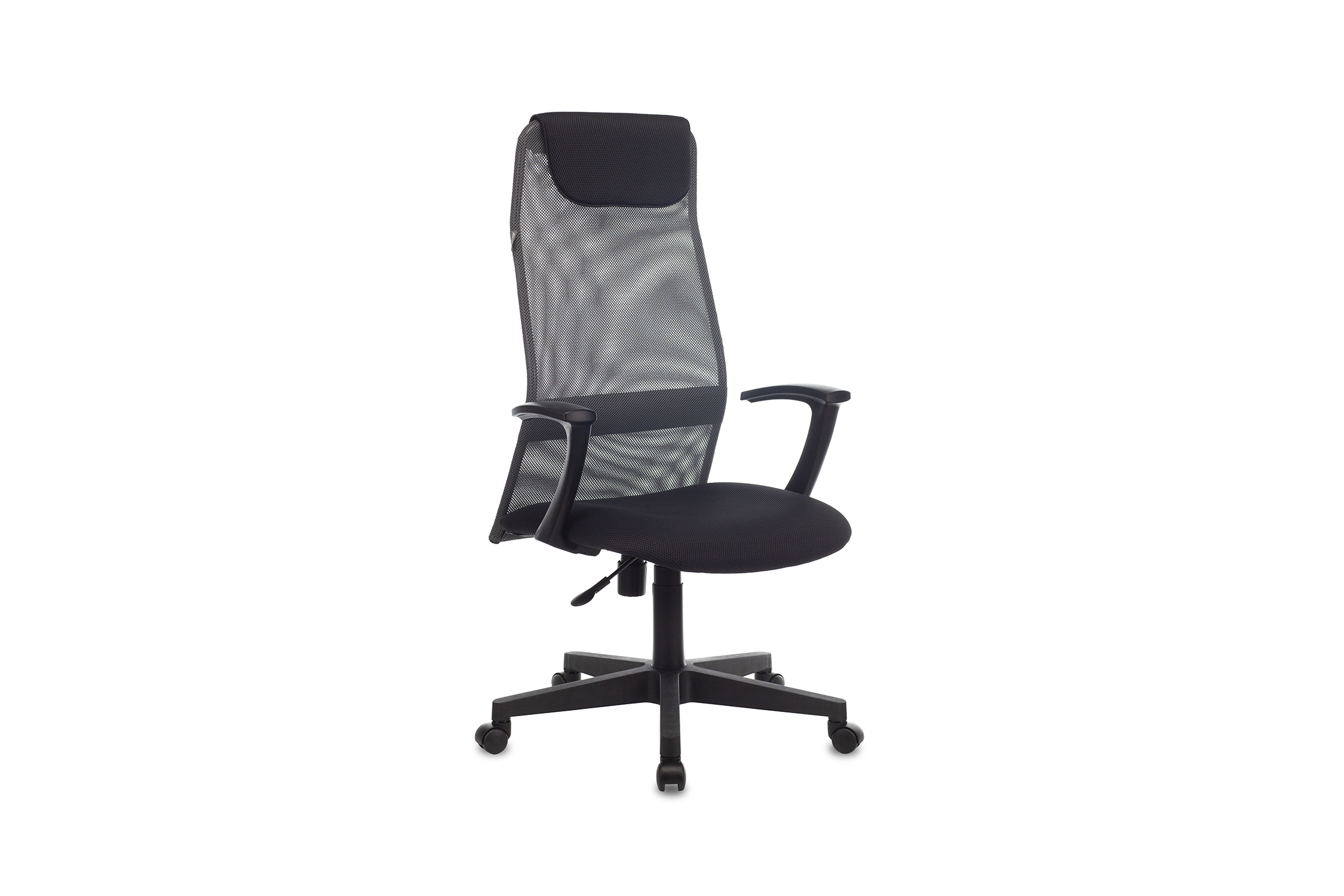 Диаметр колес - 5 см. Высота сиденья - 60 см. Высота с подлокотниками - 80 см. Ширина сиденья - 52.5 см. Глубина сиденья - 43 см. Спинка отдельная от сиденья. Крестовина пластиковая. Пружинно-винтовой механизм качания спинки. |